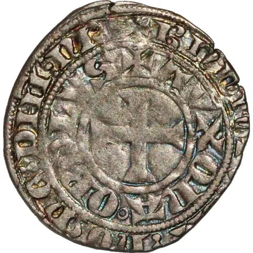 | Opschrift voorzijde | + BNDICTV ⋮ SIT ⋮ NOME ⋮ DNI ⋮ NRI + AVXONA ⚬ OBOLVS (Translation: Blessed be the name of our lord. Groschen of Auxonne.) |