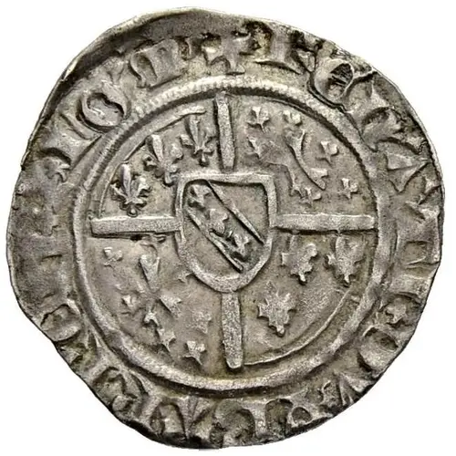 | Obverse description | Shield of Lorraine over a field with quartered arms of Anjou-Bar. |