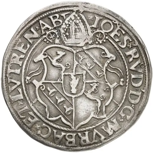 | Obverse description | Ornate 4-fold arms with central shield of Murbach, miter above, titles of Johann Rudolf. |