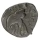 | Obverse description | Elephant stylized with left fore foot up, trunk and head up, lettering around. |