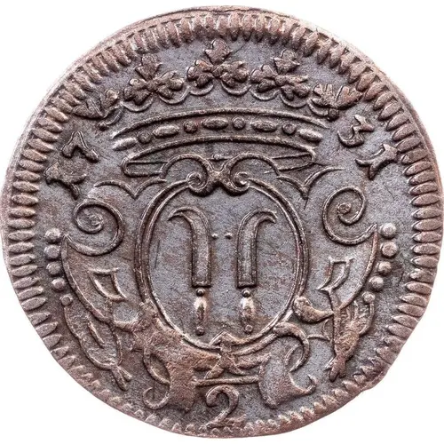 | Obverse description | Crowned ornate oval shield with coat of arms. Crown divides the date. Fractionalk denomination at bottom. |