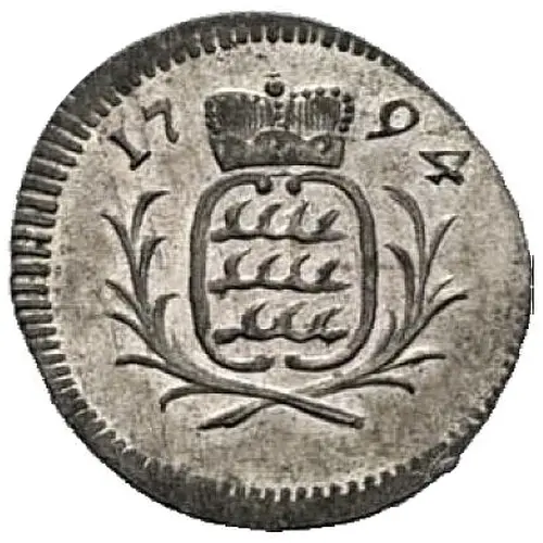 | Descrição do anverso | Crowned arms seperating the date, palm banches to the sides. |