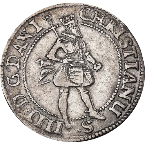 | Averslegende | CHRISTIANU | S · | IIII D G DANI (Translation: Christian IV (King of) Denmark by the grace of God) |