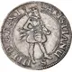 | Aversbeschreibung | Crowned king standing right, holding scepter with right hand; the other hand is on sword pommel. King`s figure is inside a rope or beaded circle, while legend is outside cut by King`s feet. In coins with crossed swords mintmark the King`s figure is bigger. |