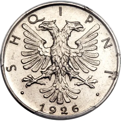 | Obverse lettering | ·SHQIPNI· 1926 (Translation: Albania) |