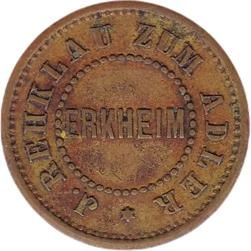 | Obverse lettering | J. REHKLAU ZUM ADLER ERKHEIM |