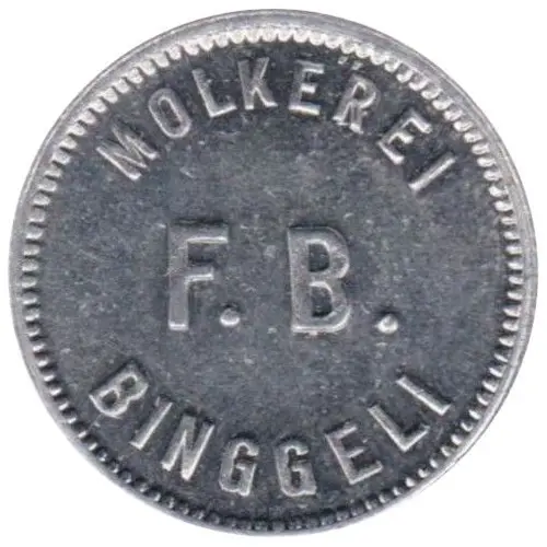 | Obverse lettering | MOLKEREI F. B. BINGGELI (Translation: Dairy F. B. Binggeli.) |
