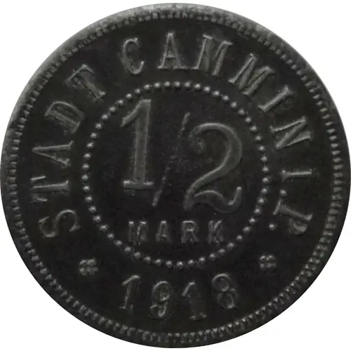 | 正面铭文 | STADT CAMMIN I.P. 1/2 MARK ✤ 1918 ✤ |