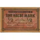 | Reverse lettering | Wer Darlehnskassenscheine nachmacht oder verfälscht oder nachgemachte oder verfälscht sich verschafft und in Verkehr bringt, wird mit Zuchthaus bis zu acht Jahren bestraft. 1/2 Mark 1/2 Aiſdewu kaẜes ſihme pusmarka Kas aiſdewu kaẜes ſihmes pakaᶅtaiẜa waj wilto, waj ari pakaᶅtaiẜitas waj wiltotas ẜew eegahda un ziteem iſdod, tas teek ẜodits ar ẜpaidudarbeem lihdſ aſton̨i gadeem. Skolinamosios kasos ženklas pusė markė Kas padirba melagingus skolinamosios kasos ženklus arba tikruosius perdirba, arba padirbtus ar perdirbtus ima ir juos į vartojimą skleidžia, bus baudžiamas katarga iki aštuonių metų. (Translation: Anyone who counterfeits or forges loan receipts, or procures counterfeit or forged loan receipts and puts them into circulation, shall be punished by penal labor for up to eight years. 1/2 Mark 1/2) |