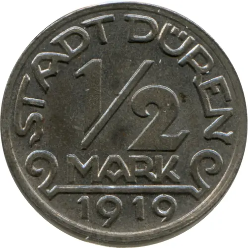 Obverse lettering STADT DÜREN 1/2 MARK 1919