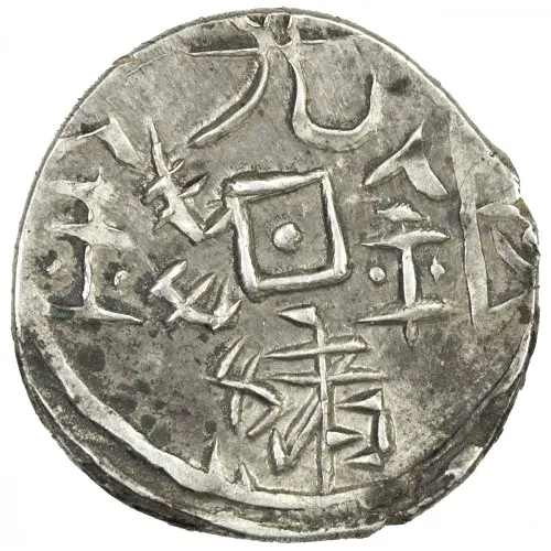 | Obverse description | Four Chinese ideograms read top to bottom, right to left with square at the centre. |