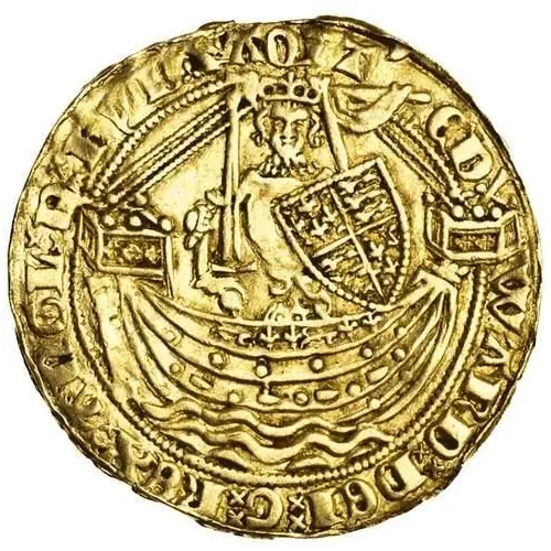 | Obverse description | Half-length figure of King Edward III standing facing in ship, holding sword and shield decorated with arms of England and France. Note: no flag at stern of ship. |