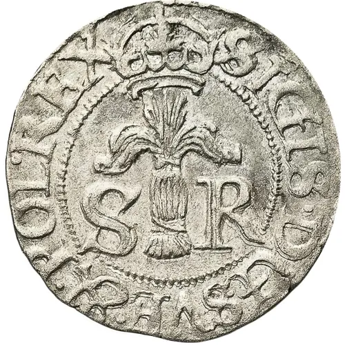 | 正面描述 | Monogram for King Sigismund Vasa (`SR`) is divided by crowned Vasa Arms. All is surround by lettering |