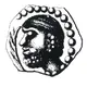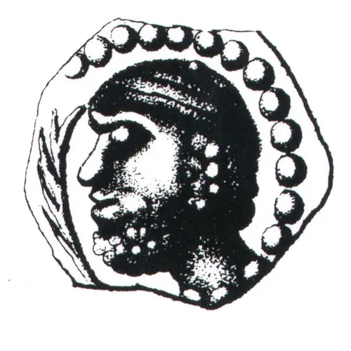 | Descripción del anverso | Crowned bust facing left with a palm branch on the left. All in a beaded ring. |