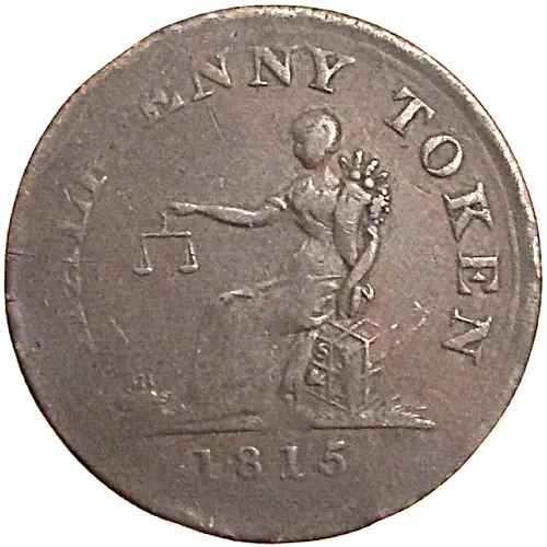 | Obverse lettering | HALFPENNY TOKEN SJ &Co 1815 |
