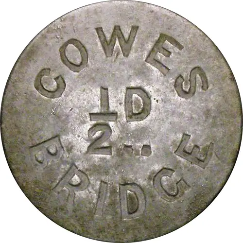 | Obverse lettering | COWES 1/2 D.. BRIDGE |