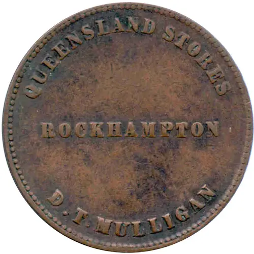 | Obverse lettering | QUEENSLAND STORES ROCKHAMPTON D.T. MULLIGAN |