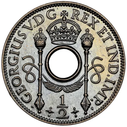 | Obverse lettering | GEORGIUS V.DG REX ET IND.IMP. +1/2+ (Translation: George V by the grace of god King and Emperor of India) |