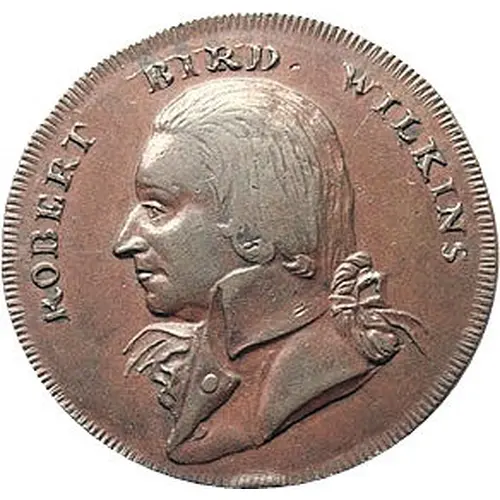 | Obverse description | A bust of Robert Bird Wilkins in a tie-wig and high collared coat left, legend above |