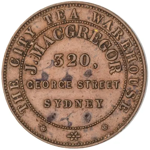 | Obverse lettering | THE CITY TEA WAREHOUSE J.MACGREGOR 320, GEORGE STREET SYDNEY |