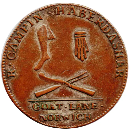 | Obverse lettering | R . CAMPIN . HABERDASHER. . GOAT . LANE . NORWICH. |