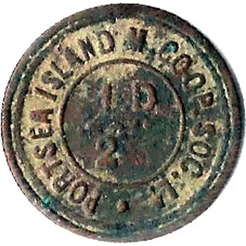 | Obverse lettering | Portsea Island M Co-op, Soc. Ltd round the edge in the centre 1/2 d (half penny) |