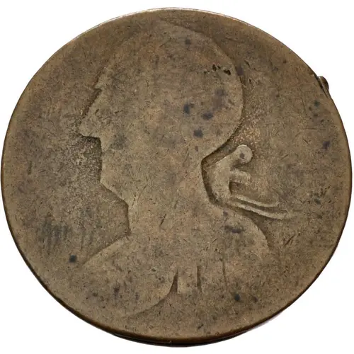 | Reverse description | Crude Britannia seated right with spear and spray of leaves |