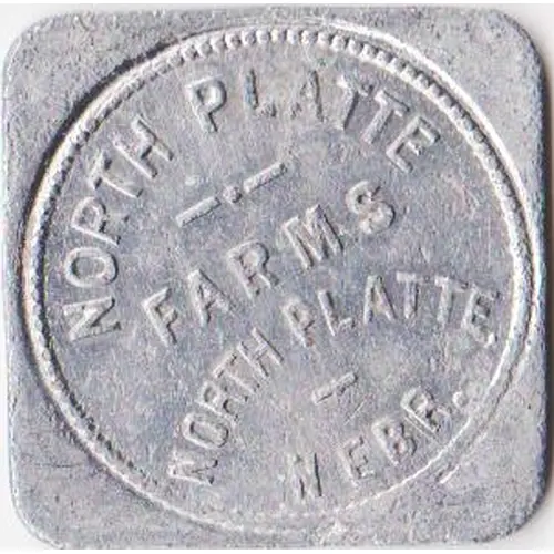 | Obverse lettering | NORTH PLATTE FARMS NORTH PLATTE, NEBR. |