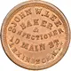 | Obverse lettering | JOHN W. LEE BAKER & CONFECTIONER 10 MAIN ST. LEXINGTON, KY |