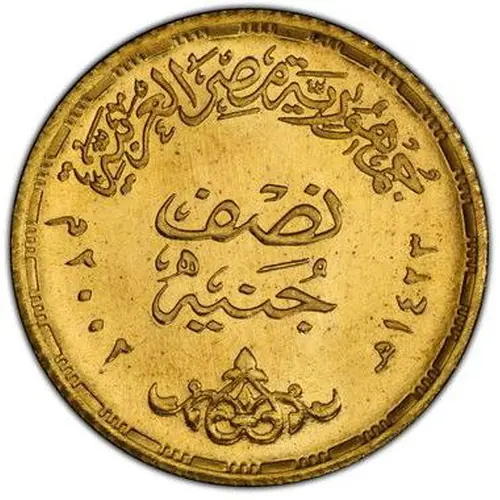 | Obverse lettering | جمهورية مصر العربية نصف جنيه ١٤٢٣ ٢٠٠٢ (Translation: Arab Republic of Egypt Half Pound 1423 2002) |