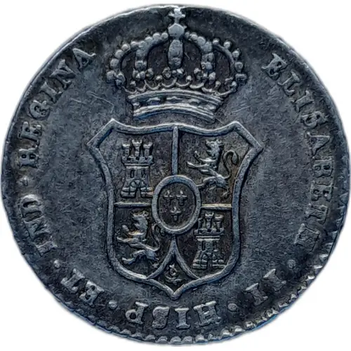 | Obverse lettering | ELISABETH.II.HISP.ET.IND.REGINA (Translation: Isabella II, queen of the Spains and Indias) |
