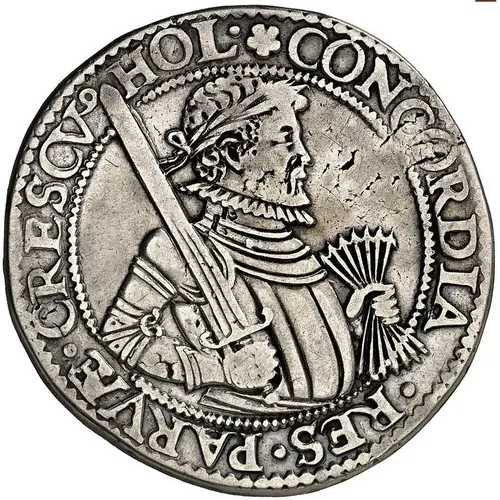 | Reverse description | Shield in six parts with arms of Gelderland, Flanders, Holland, Zeeland, Utrecht and Friesland, date above, inside inner circle |