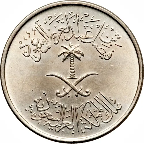 | Obverse lettering | فيصل بن عبد العزيز آل سعود ملك المملكة العربية السعودية (Translation: Faisal bin `Abd al-`Aziz Al Sa`ud King of the Kingdom of Saudi Arabia) |