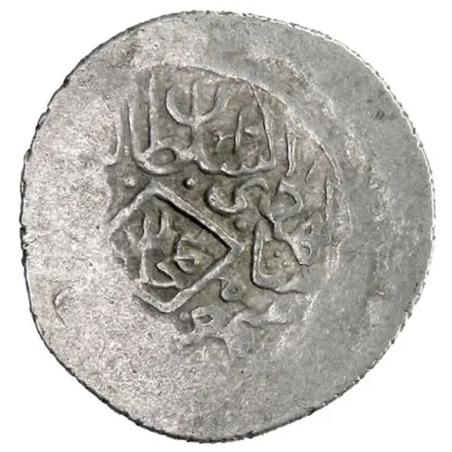 Sunni kalima (One of very few known Safavid coins with only the Sunni kalima, i.e., without `ali wali Allah. The kalima is in two horizontal lines, divided amongst three Greek-style ropes, as on contemporary Mamluk coinage.) |