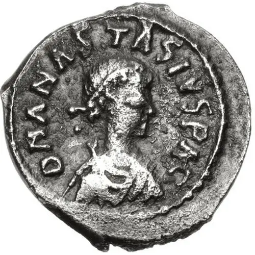 | Opschrift voorzijde | D N ANASTASIVS P AC (Translation: D(-ominus) N(-oster) ANASTASIVS P(-erpetuus) A(-v-)C(-vstvs) `Our Lord Anastasius, Perpetual Emperor`) |