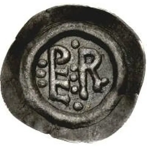 | Obverse description | Thin monogram with three dots to the left and five dots down the centre. |