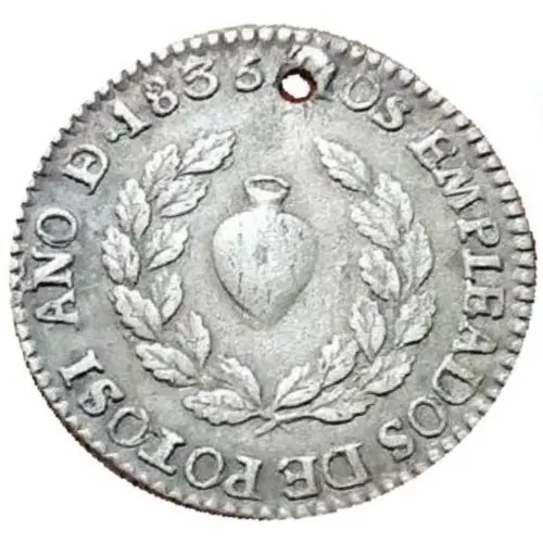 | Obverse lettering | LOS EMPLEADOS DE POTOSI ANO DE 1835 |