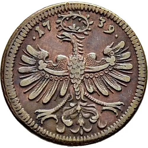 | Obverse description | Crowned displayed eagle, head to left divides date near top. |
