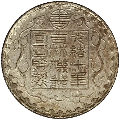 | Obverse lettering | 官吉光 局林緒 監機十 製器年 (Translation: Guangxu, 10th Year Kirin machinery Official production Mint) |