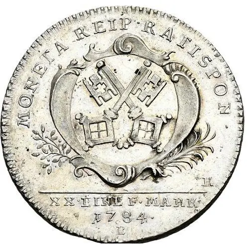 | Obverse lettering | MONETA REIP RATISBON K XX EINE F MARK 1784 B |