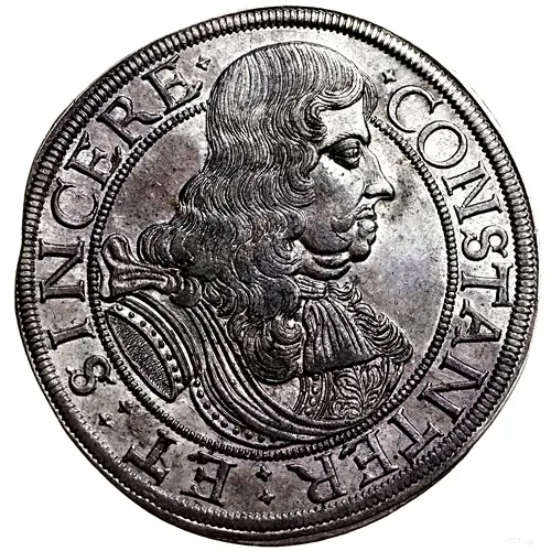 Arka yüz lejandı CHRISTIANVS. D.B. DVX. SIL. LIG. BREG. ET. WOL. NAT. OLAV. / A.C. MDCXIIX. / XIX. APRIL / DENAT. LIGNICI. / A.C. MDCLXXII / XXIX. FEBR.
