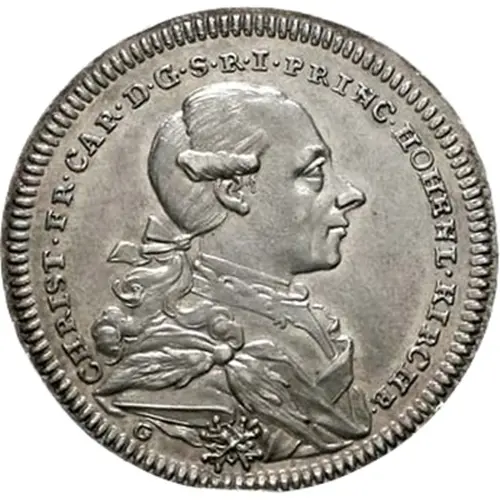 Artistry: The coin’s design reflects the transitional artistic styles of the late 18th century, blending elements of late Baroque formality with emerging Neoclassical simplicity. While the specific engraver is typically unrecorded for such issues from minor states, the obverse likely features a detailed, wigged bust of Count Christian Frederick Charles, often in profile, conveying authority. The reverse would typically display the intricate Hohenlohe-Kirchberg arms, surrounded by a circumscription detailing the ruler's titles or the coin's value and date.