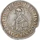 | Reverse description | Saint holding orb over manifold shielded arms seperating the date. |