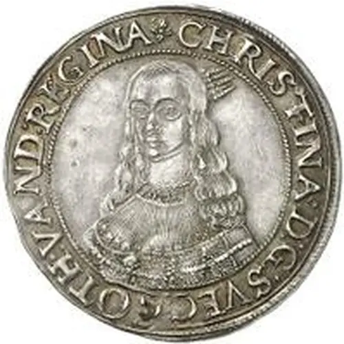 CHRISTINA · D : G : SVEC · GOTH : VAND : REGINA (Translation: Christina Dei Gratia Sveciae Gothorum Vandalorumque Regina Christina, with God`s grace, Queen of Sweden, the Goths, and the Wends) |