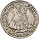 Crowned half-length armoured figure holding sceptre over right shoulder, left hand on sword pommel. Armour ornate with arabesques. Crown divides an inner circle and the legend around. |