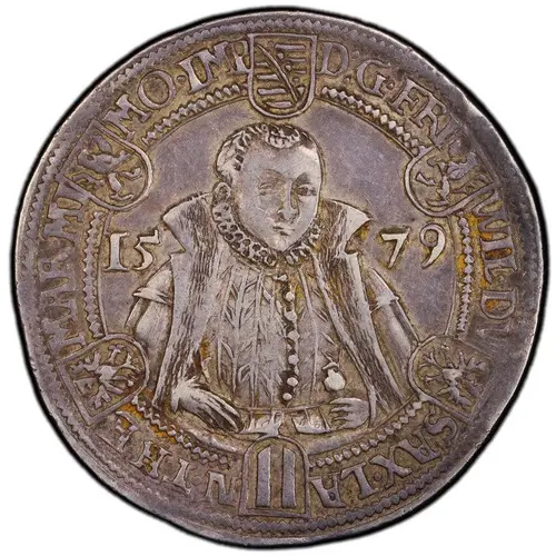 | Obverse lettering | D. G. FR WIL. DV SAX. LAN. TH E MAR. MI MO. IMP. 1579 (Translation: By the Grace of God, Frederick William Duke of Saxony Landgrave of Thuringia and Marquis of Misnia. Imperial Coinage.) |