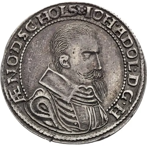 Artistry: While the specific engraver is unrecorded, this coin exemplifies the Late Renaissance/Early Baroque numismatic style prevalent in German territories. The obverse typically features a finely rendered bust portrait of Duke John Adolphus, often armored, conveying authority, encircled by his Latin titles. The reverse showcases the elaborate ducal coat of arms of Schleswig-Holstein-Gottorp, a complex heraldic display of quartered shields surmounted by a ducal crown. Intricate detailing and clear inscriptions characterize the craftsmanship.