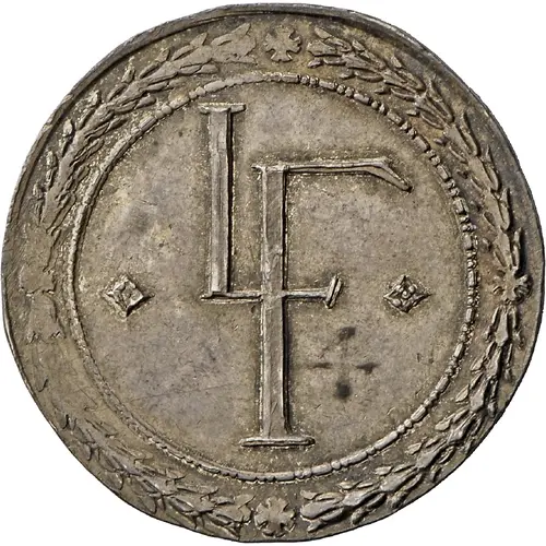 Mô tả mặt sau Crossbow vertical divides date in circle, wreath border.