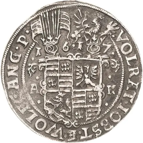 | Obverse description | Helmeted arms, date and mintmaster`s initials divided by arms. |