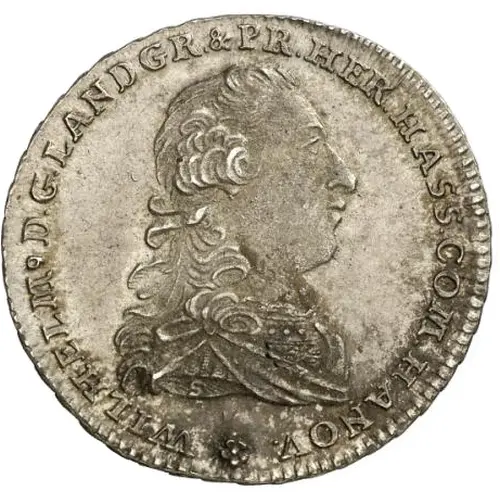 Artistry: While the specific engraver for this coin is often unrecorded, the stylistic school reflects the prevailing late Baroque aesthetic transitioning towards Neoclassicism common in German states. The obverse typically features a finely rendered, draped bust of Count William IX, often facing right, surrounded by his regnal titles. The reverse would likely display the crowned arms of Hanau-Münzenberg, meticulously detailed, along with the denomination and the "KONVENTIONS MÜNZE" legend, emphasizing its adherence to the monetary convention.